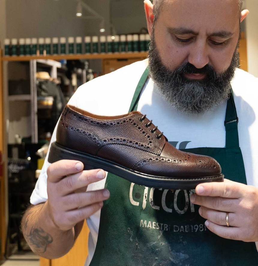 Questa storia non inizia con “C’era una volta…” ma con “Come si faceva una volta…”. Perché, a differenza di tante altre storie, questa è una storia fatta di azioni prima che di parole.È una storia che muove i primi passi tra l’Abruzzo e le Marche, nell’antico tomaificio della famiglia Ciccone. È una storia che intreccia i valori dell’artigianalità alle qualità del mondo nuovo, così come si intrecciano i lacci delle scarpe, fondamentali per non cadere a terra. È la storia di un calzolaio che ha fatto di un antico mestiere un nuovo lavoro, attraverso un servizio esclusivo al passo coi tempi. È una storia che inizia dalle suole e si conclude con una stretta di mano.